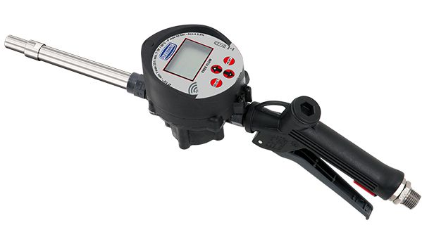 Раздаточный пистолет с электронным счетчиком с овальными шестернями для AdBlue, серия MARS, с спусковой скобой, с жесткой выпускной трубкой, каплеотсекателем и поворотным соединением 1/2” BSP (M). Пистолет с пластиковым корпусом.