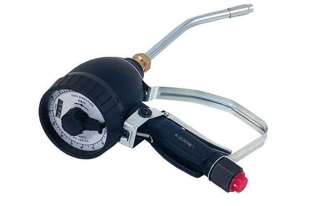 Механический аналоговый счетчик для масла, с пистолетом, спусковой скобой, жесткой трубкой Ø 12 мм, с каплеотсекателем и поворотным соединением 1/2” BSP (M). Заданные значения 0 – 60 л.
