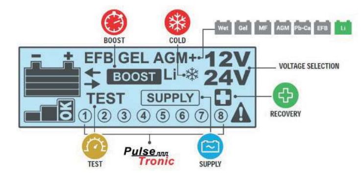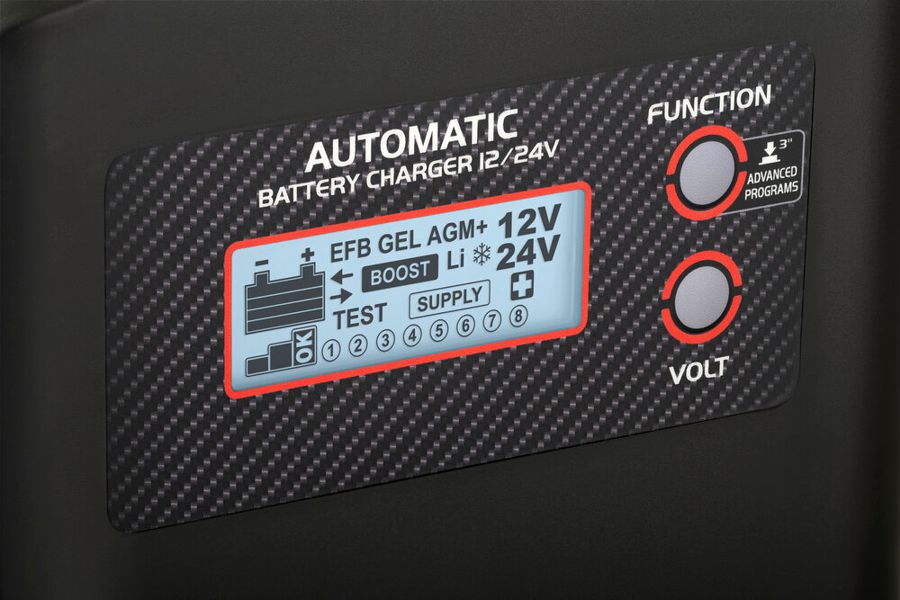 Универсальное зарядное устройство PULSE 30 EVO с множеством полезных функций для обслуживания WET, GEL, AGM, MF, Pb-Ca, EFB, Li аккумуляторов с напряжением 12В и 24В. Оборудование обеспечит безопасный заряд и поддержание заряда аккумулятора, в том числе в сложных условиях окружающей среды (при низкой температуре). Проверит напряжение на контактах и пусковую способность (ССА) аккумулятора, функционирование генератора транспортного средства. Восстановит глубоко разряженный аккумулятор, подверженный сульфатации. Это надежный и стабильный источник питания при замене аккумулятора, при проведении диагностики, обеспечит поддержание в исправном состоянии аккумулятора транспортного средства в выставочных залах. Оперативное отображение всех параметров работы аппарата на ЖК-экране позволяет контролировать процесс обслуживания аккумулятора даже при плохом освещении. Предусмотрена многоуровневая защита аппарата: защита от перегрузки, короткого замыкания, неправильной полярности. Устройство сообщает о сбоях и защищает аккумулятор от неправильного подключения.