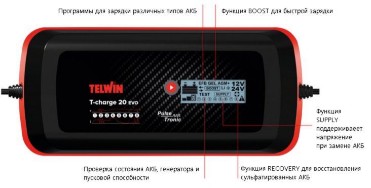 Продажа зарядных устройств Telwin T-CHARGE 20 EVO со склада (СПб, Москва, Челябинск, Казань) от производителя.